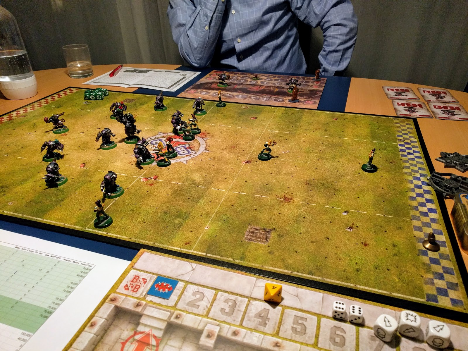 "Indeed it is, Bob. We are moving up into the bottom of the second half and if the Orks continue at this pace, a second touchdown is in range!"